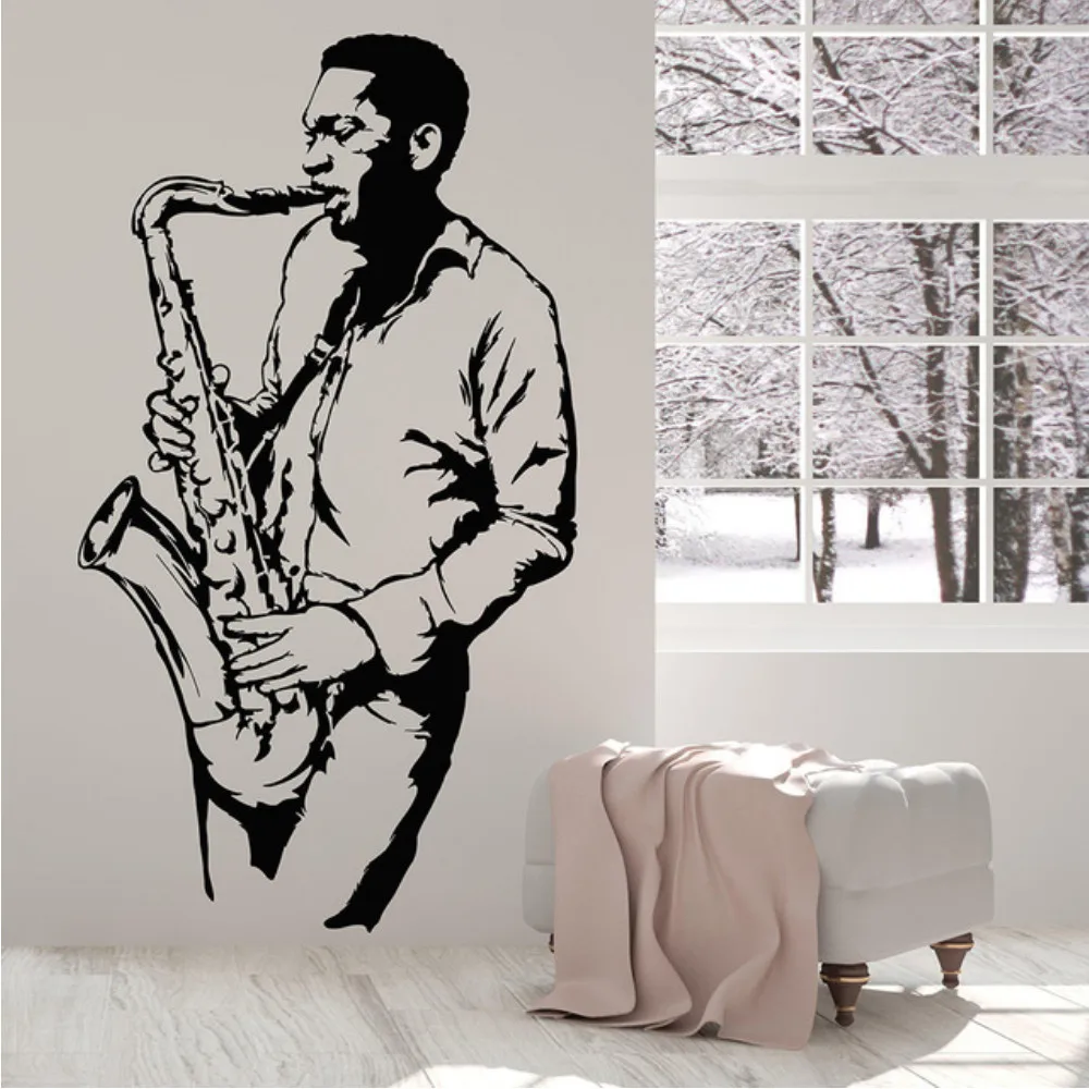 Hot Sale Saxophone player Wall Sticker Decor Music Blues Music Lover Art Mural Vinyl Decal Poster