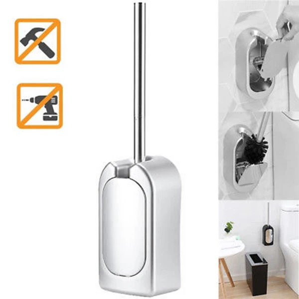 ORIGINAL Wall-Mounted Toilet Brush Set Vented Stainless Steel Bathroom Bowl Cleaner